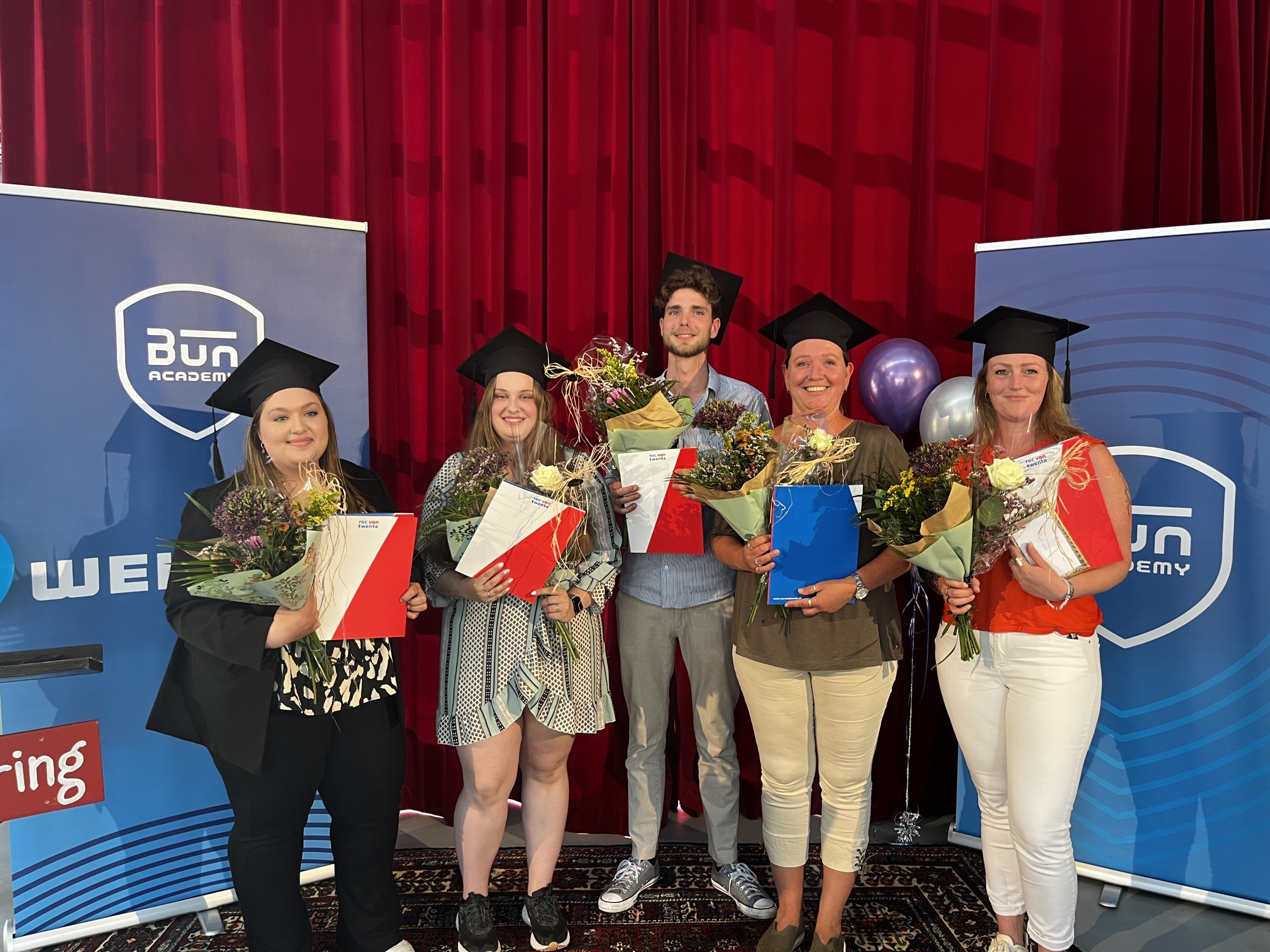 Wij feliciteren onze tweede lichting Bun BBL-klas met het behalen van hun niveau 4 diploma! Zij hebben deze gisterenmiddag in ontvangst genomen op de prachtige locatie van Theatergezelschap Vis à Vis in Almere.